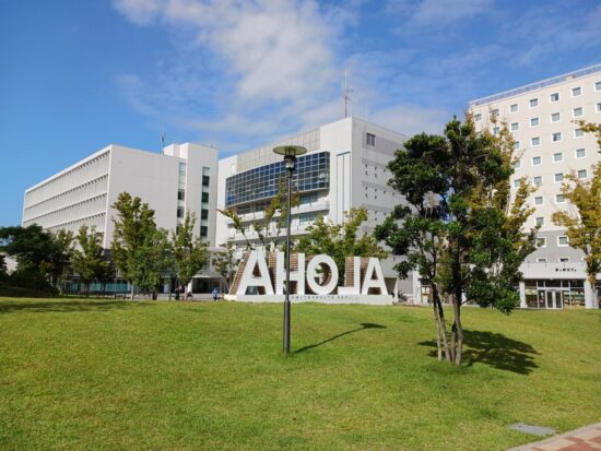 そして文化会館に向かって歩くと市庁舎の前に「ALOHA」のモニュメント。